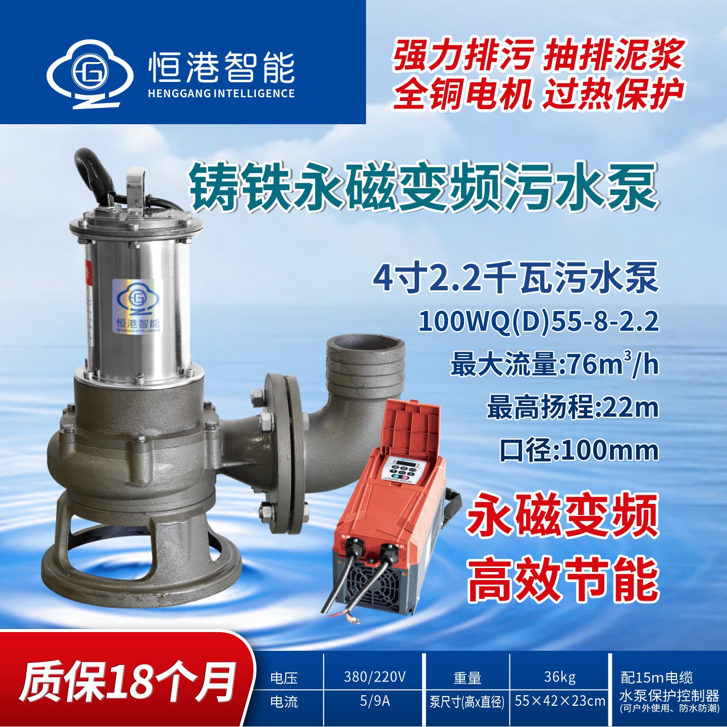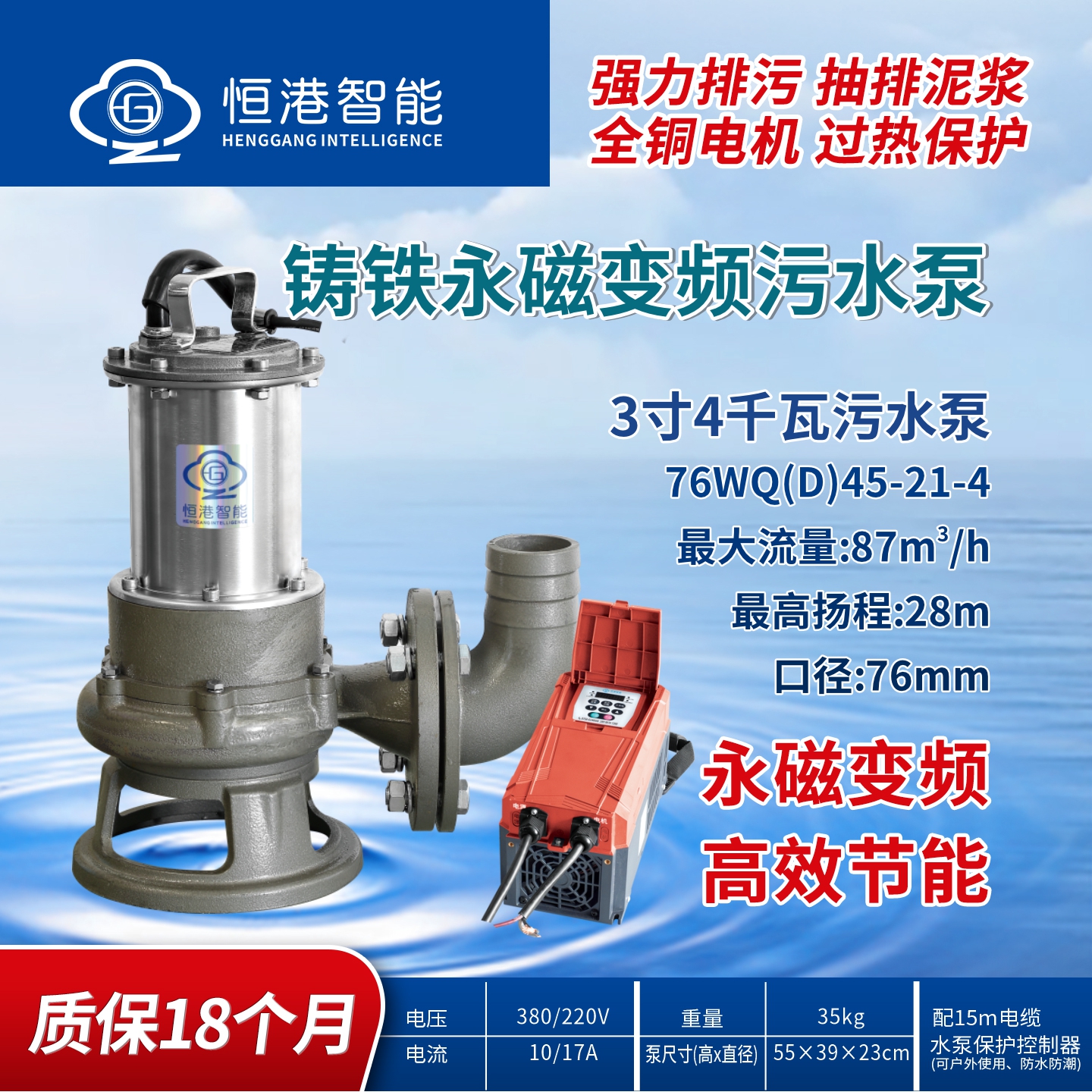 恒港智能永磁變頻3寸/4寸小功率魚塘無堵塞高效污水泵節(jié)能排污泵清淤泥漿泵